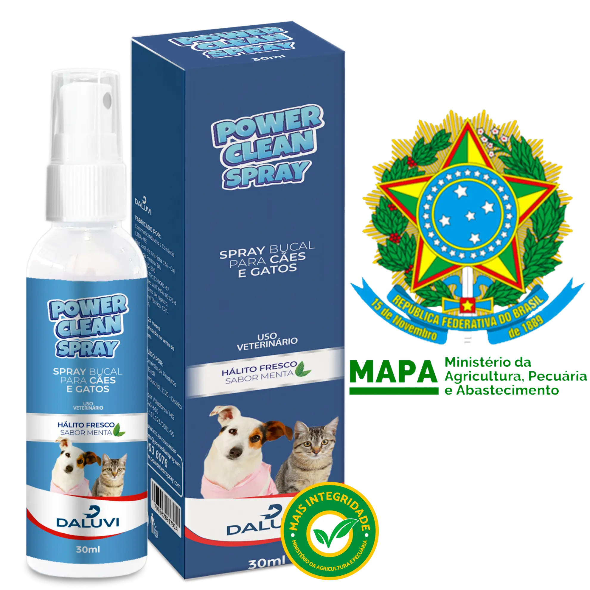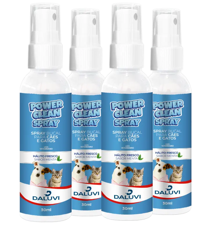 O Power Clean Spray é um spray para tártaro em cães e gatos desenvolvido para eliminar placas bacterianas, combater o mau hálito e prevenir doenças periodontais. Diferente de procedimentos com anestesia, ele atua de forma gradual e segura, sendo aprovado no MAPA e formulado com ingredientes naturais.